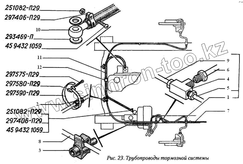 Каталог запасных частей к технике: ГАЗ-560. Трубопроводы тормозной системы