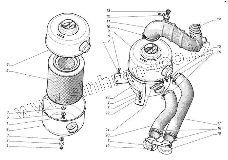Каталог запасных частей к технике: ГАЗ-560. Фильтр воздушный со шлангами, воздухозаборник