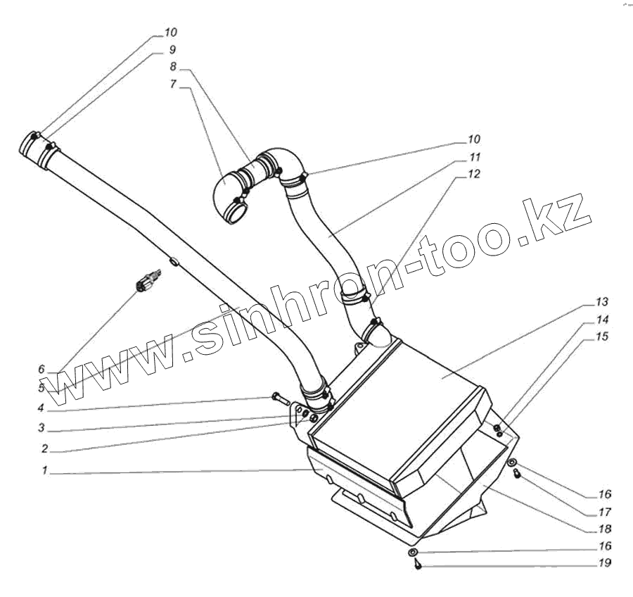 Каталог запасных частей к технике: ГАЗ-560. Охладитель наддувочного воздуха с патрубками