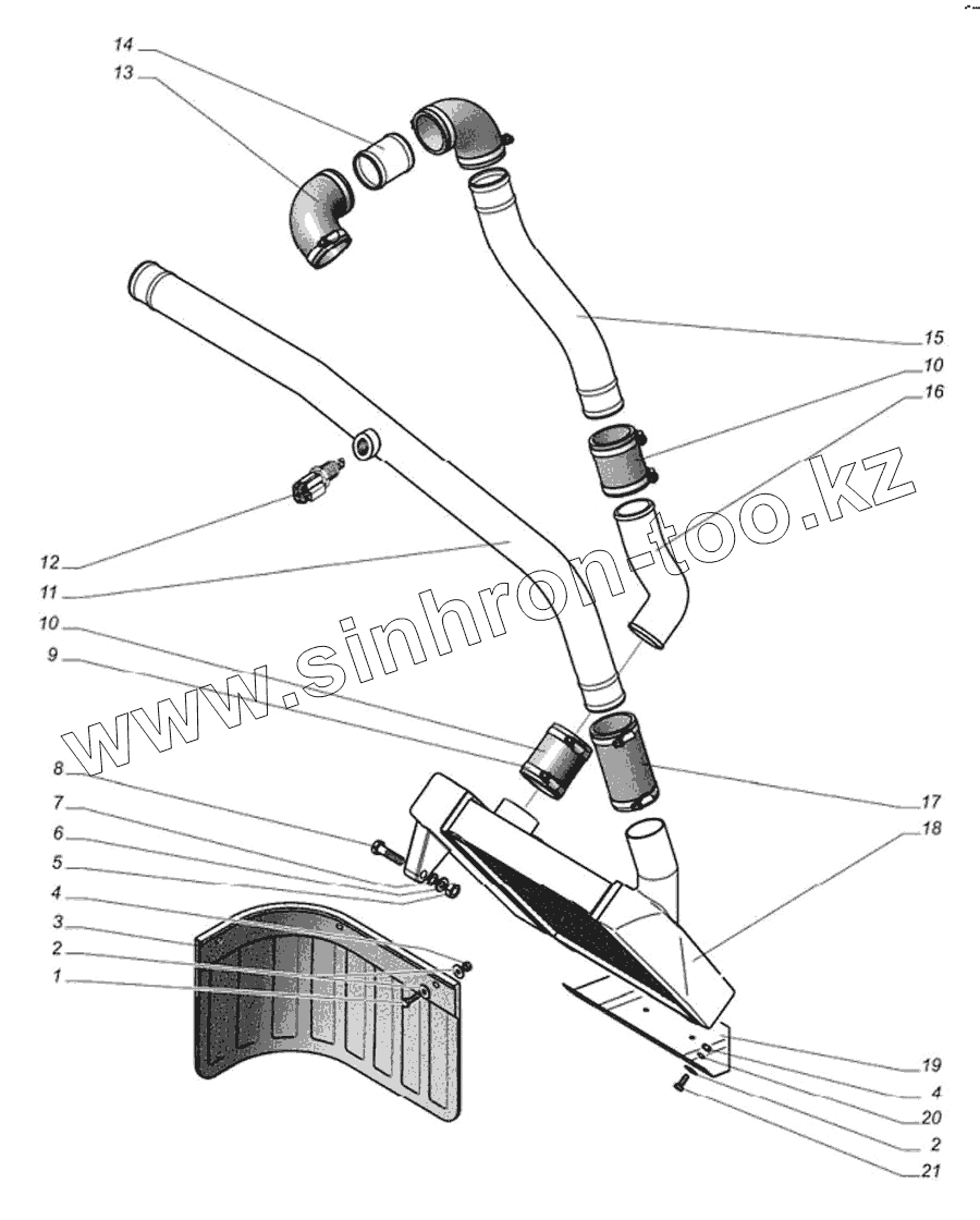 Каталог запасных частей к технике: ГАЗ-560. Охладитель наддувочного воздуха с патрубками, фартук заднего брызговика