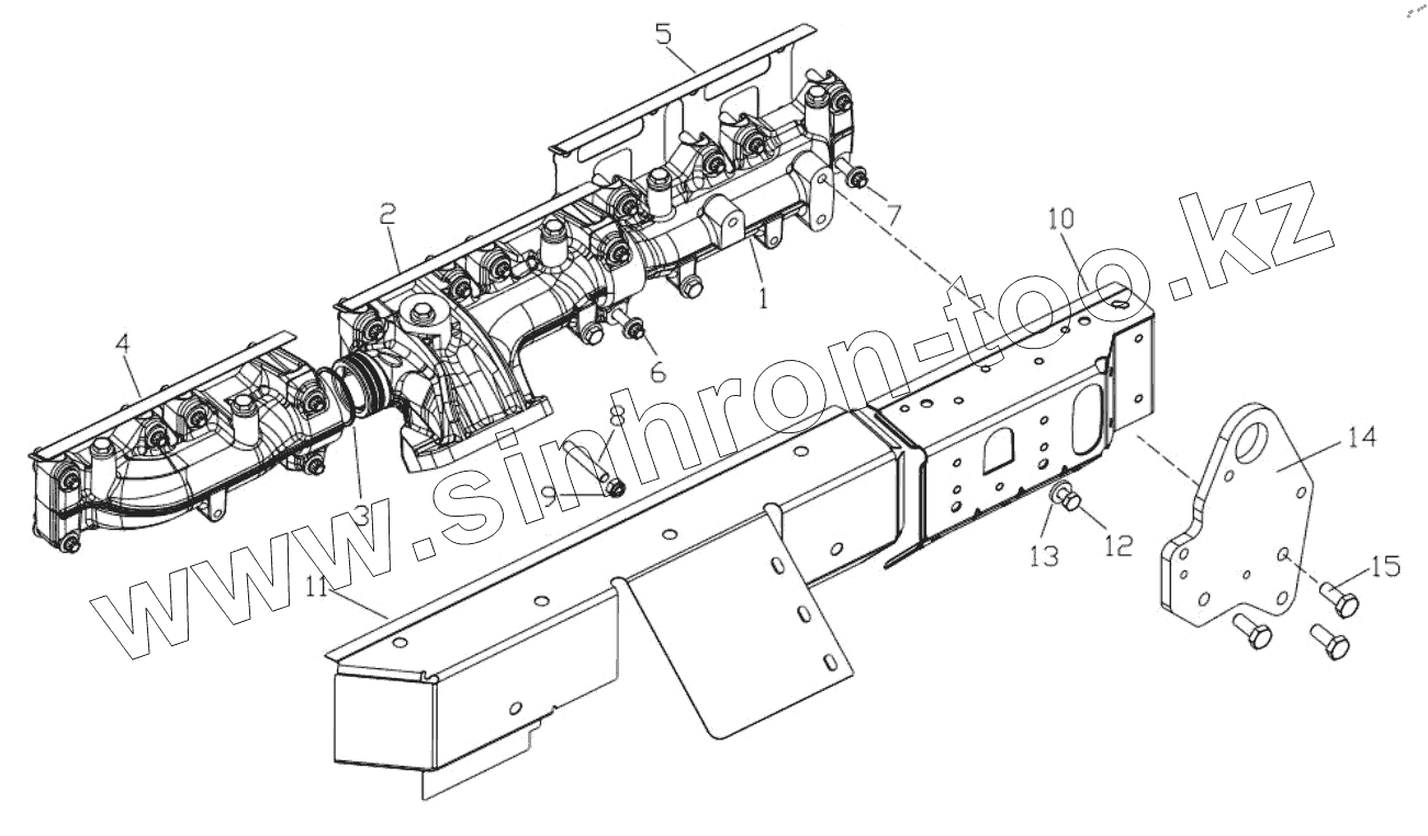 Каталог запасных частей к технике: HOWO MC07. Exhaust Manifold and Lifting Eye