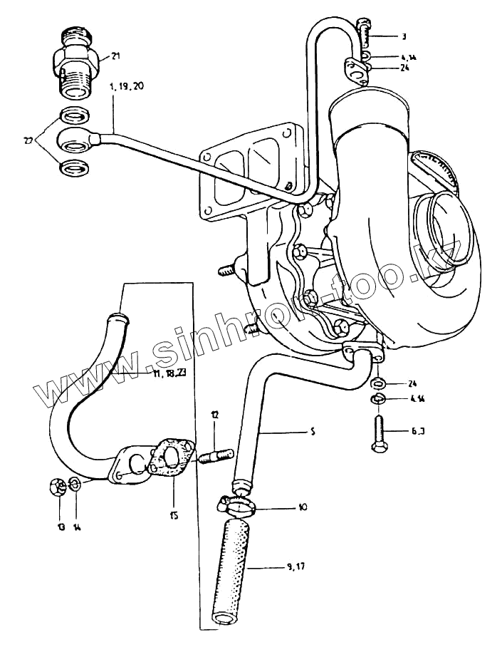 Каталог запасных частей к технике: HSW SW-680. Группа проводов турбокомпрессора