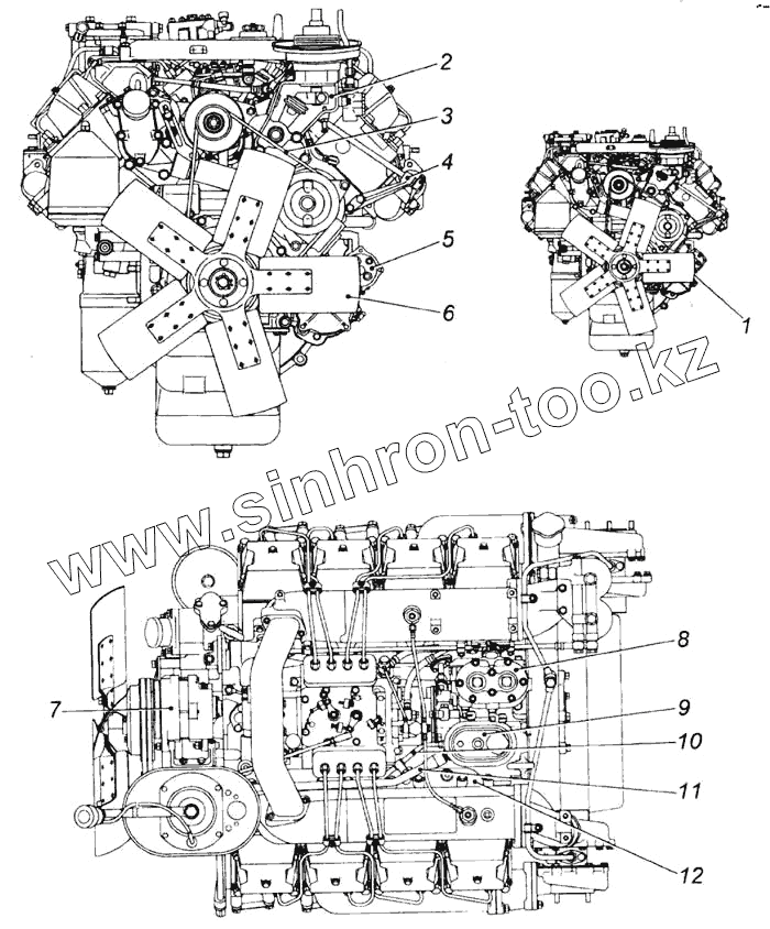 Каталог запасных частей к технике: Камский автозавод 7403.10-260 (Евро 0). Двигатель с оборудованием