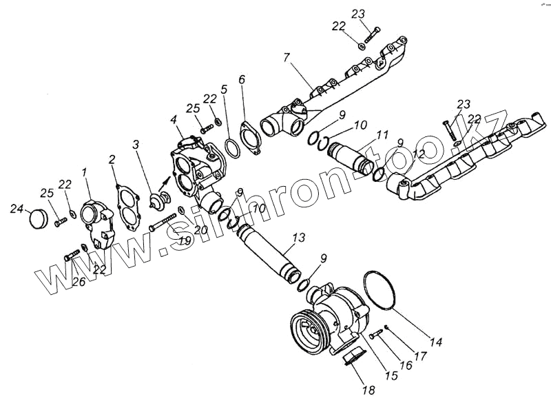 Каталог запасных частей к технике: Камский автозавод 740.11-240 (Евро 1). Установка системы охлаждения