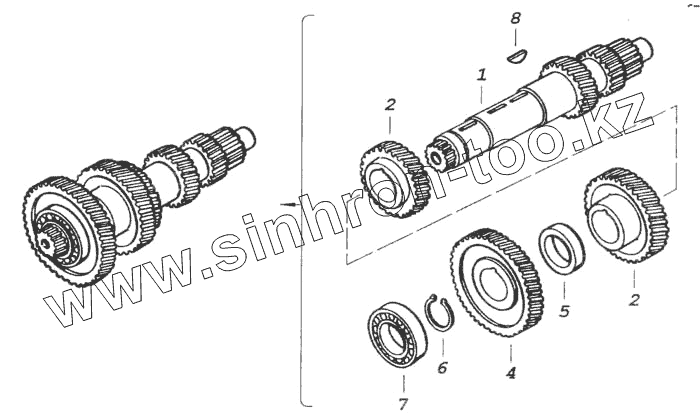 Каталог запасных частей к технике: Камский автозавод 740.31-240 (Евро 2). 14.1701047 Вал промежуточный