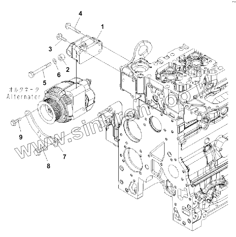Каталог запасных частей к технике: Komatsu SAA4D107E-1A. ALTERNATOR MOUNTING