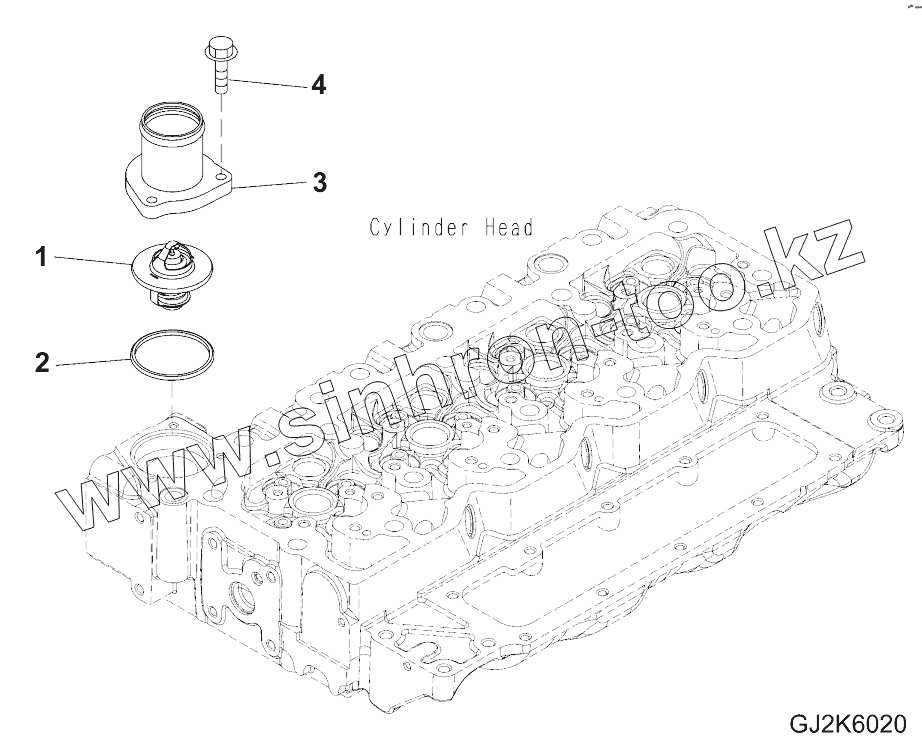 Каталог запасных частей к технике: Komatsu SAA4D107E-1A. THERMOSTAT AND WATER OUTLET CONNECTOR