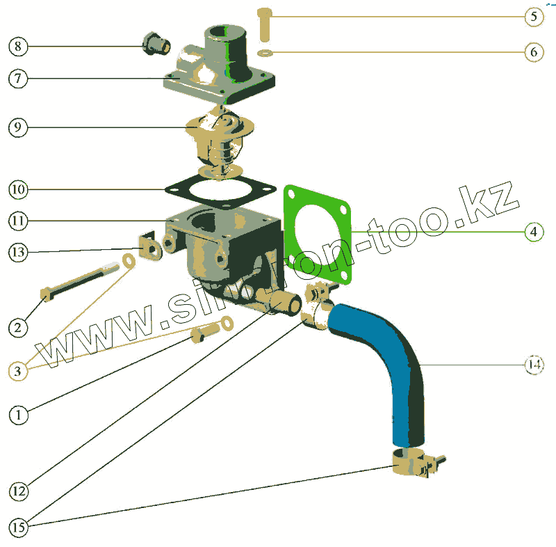 Каталог запасных частей к технике: ММЗ Д-242С. Система охлаждения, установка термостата