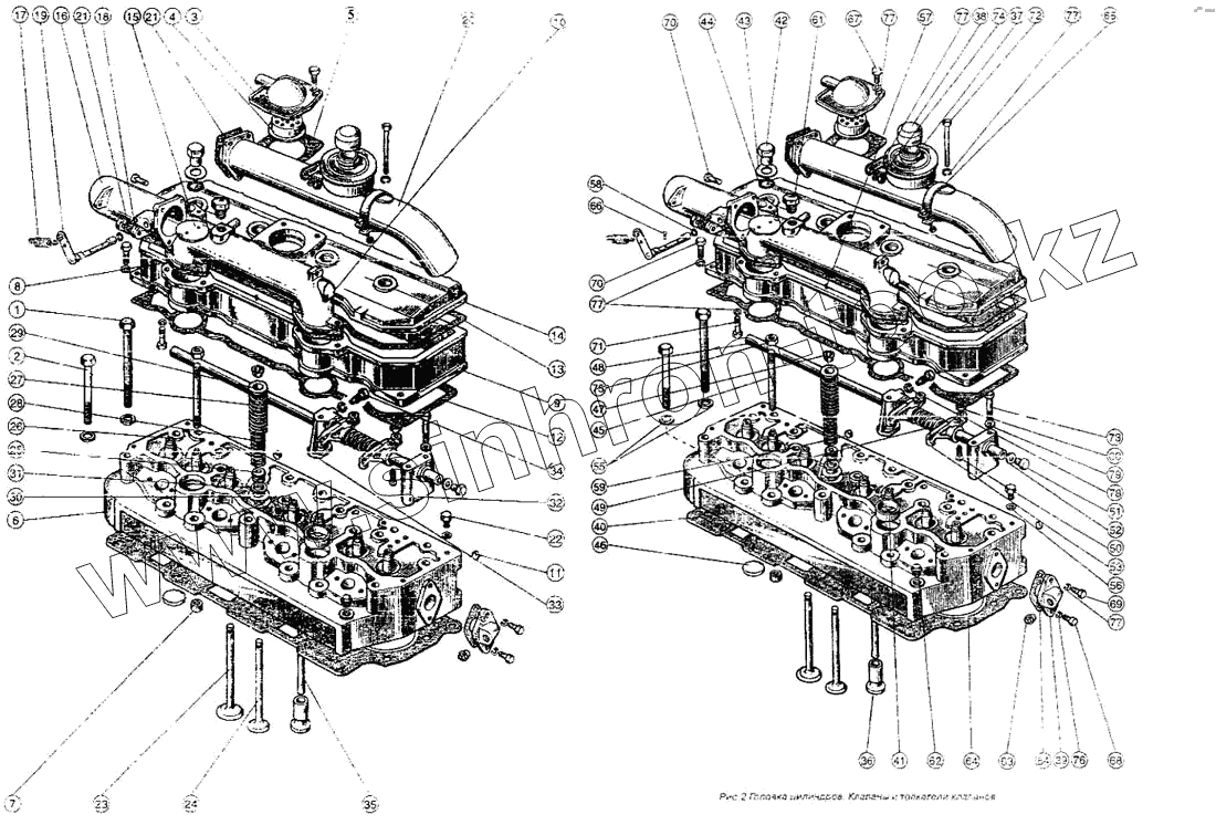 Каталог запасных частей к технике: ММЗ Д-243. Головка цилиндров. Клапаны и толкатели клапанов