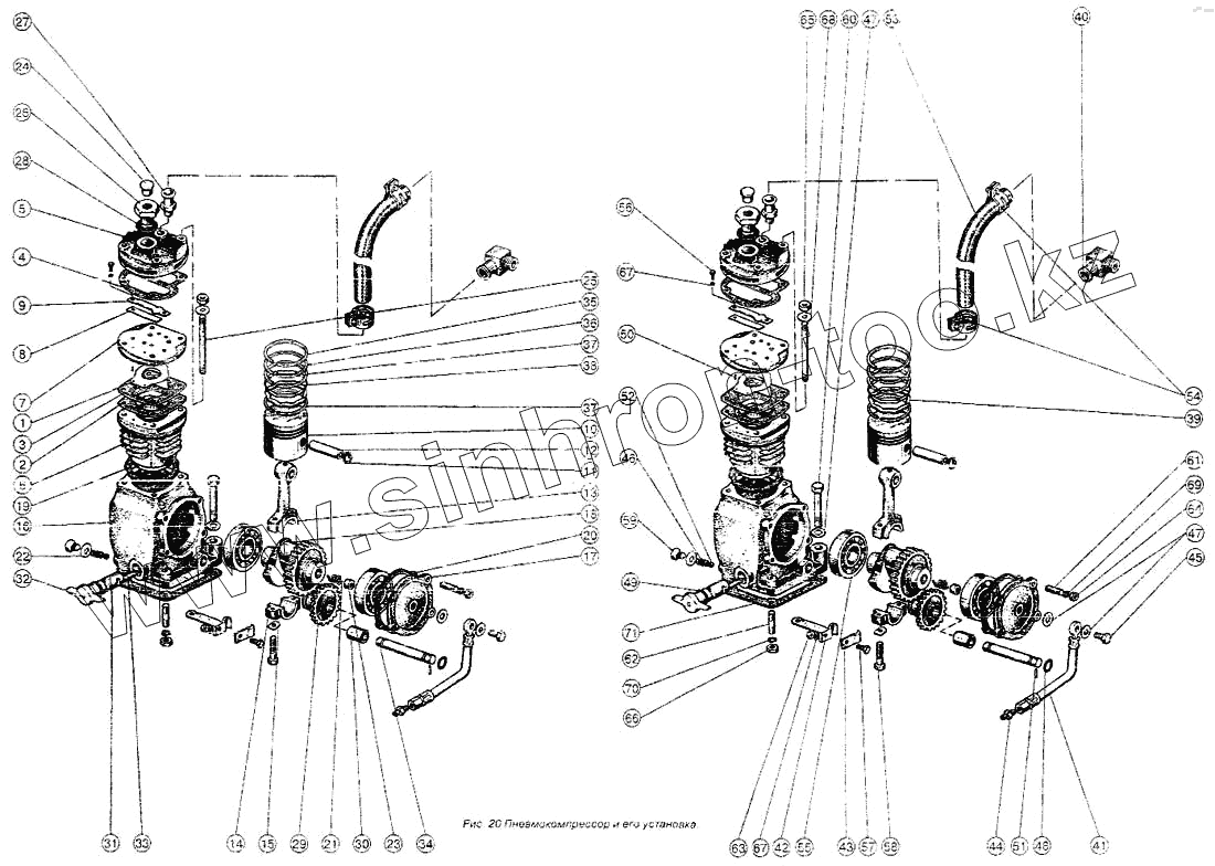 Каталог запасных частей к технике: ММЗ Д-243. Пневмокомпрессор и его установка