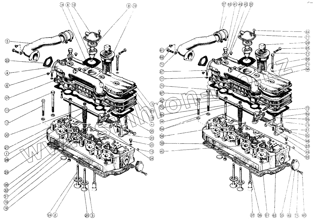 Каталог запасных частей к технике: ММЗ Д-245.12. Головка цилиндров. Клапаны и толкатели клапанов