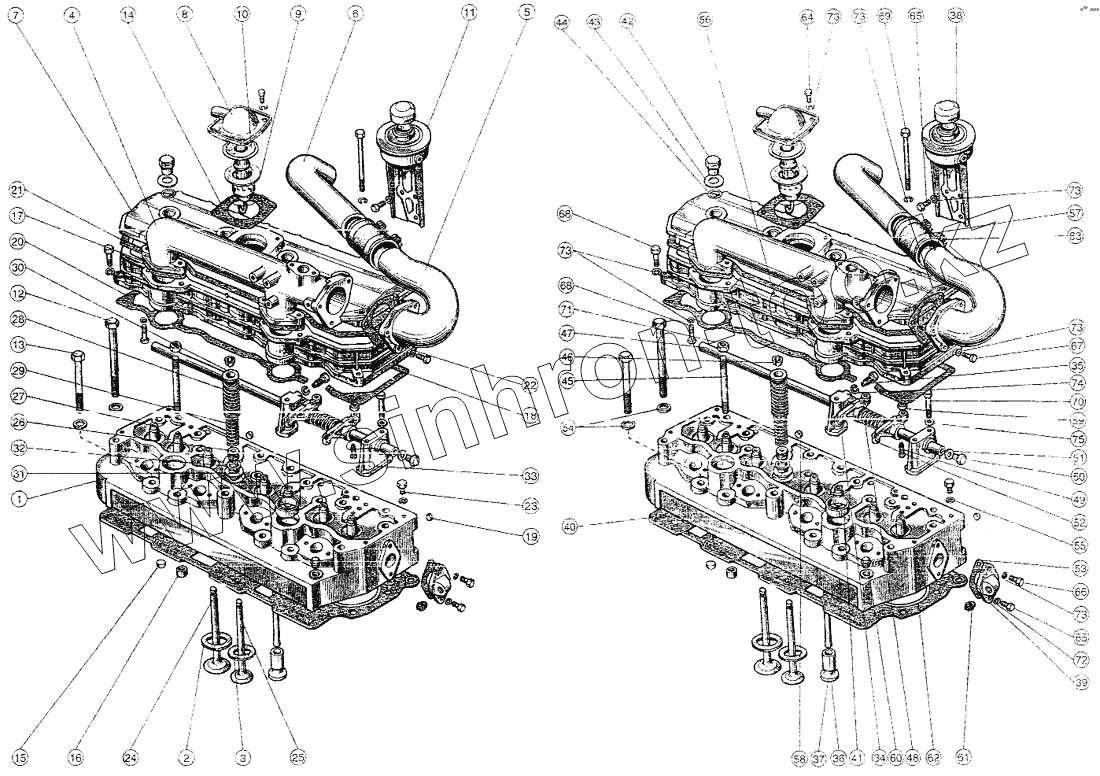 Каталог запасных частей к технике: ММЗ Д-245. Головка цилиндров. Клапаны и толкатели клапанов