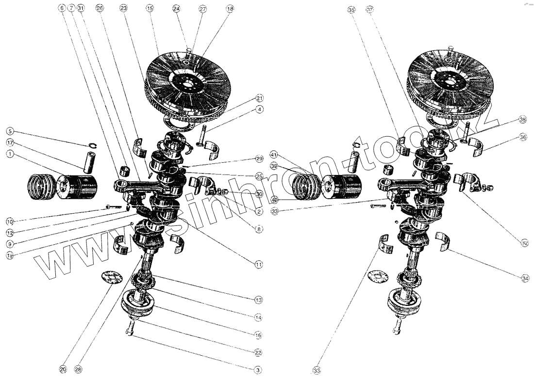 Каталог запасных частей к технике: ММЗ Д-245. Поршни и шатуны. Коленчатый вал и маховик