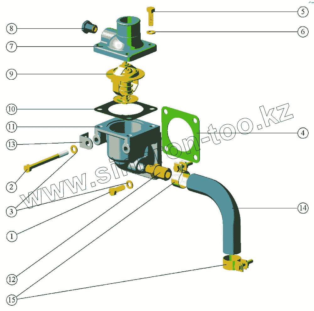 Каталог запасных частей к технике: ММЗ Д-245-26 / Д-245С-214. Система охлаждения. Установка термостата