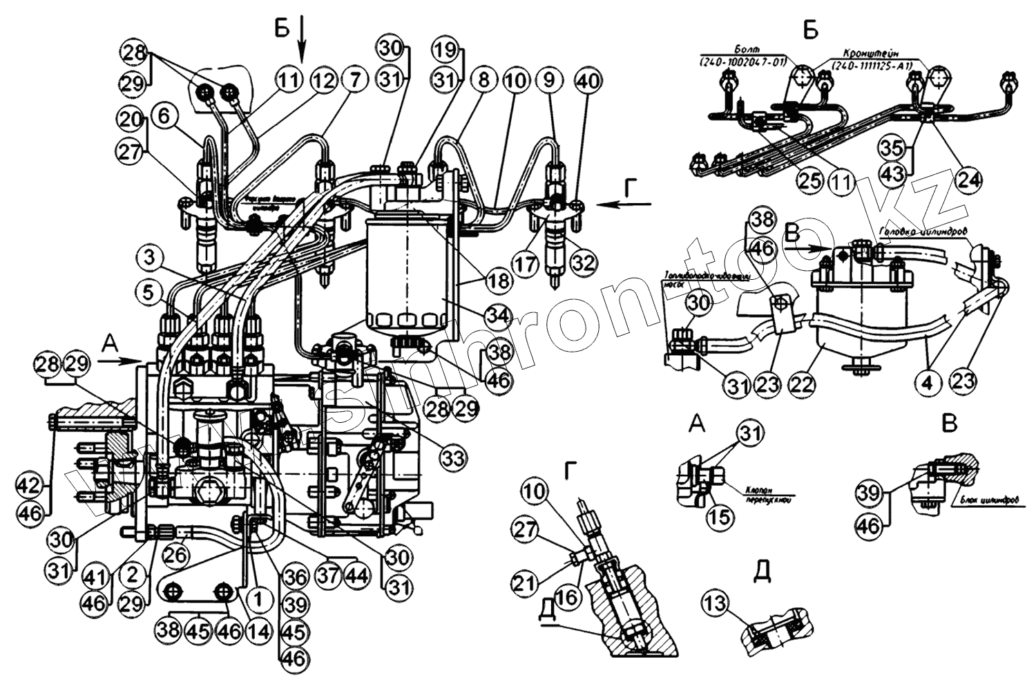 Каталог запасных частей к технике: ММЗ Д-245.2S2-827. Топливные трубопроводы и установка топливной аппаратуры