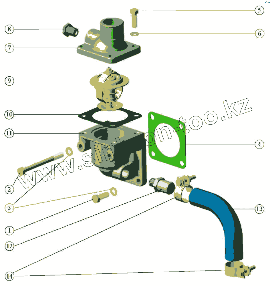 Каталог запасных частей к технике: ММЗ Д-245.5. Система охлаждения Установка термостата