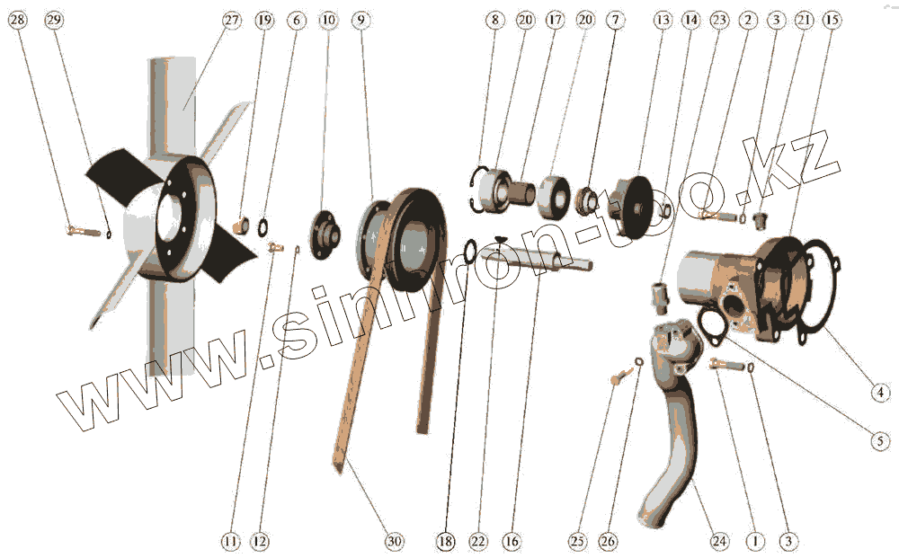 Каталог запасных частей к технике: ММЗ Д-245.5. Установка водяного насоса. Установка вентилятора