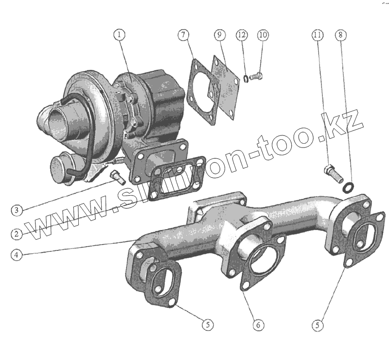 Каталог запасных частей к технике: ММЗ Д-245.7E3. Установка турбокомпрессора
