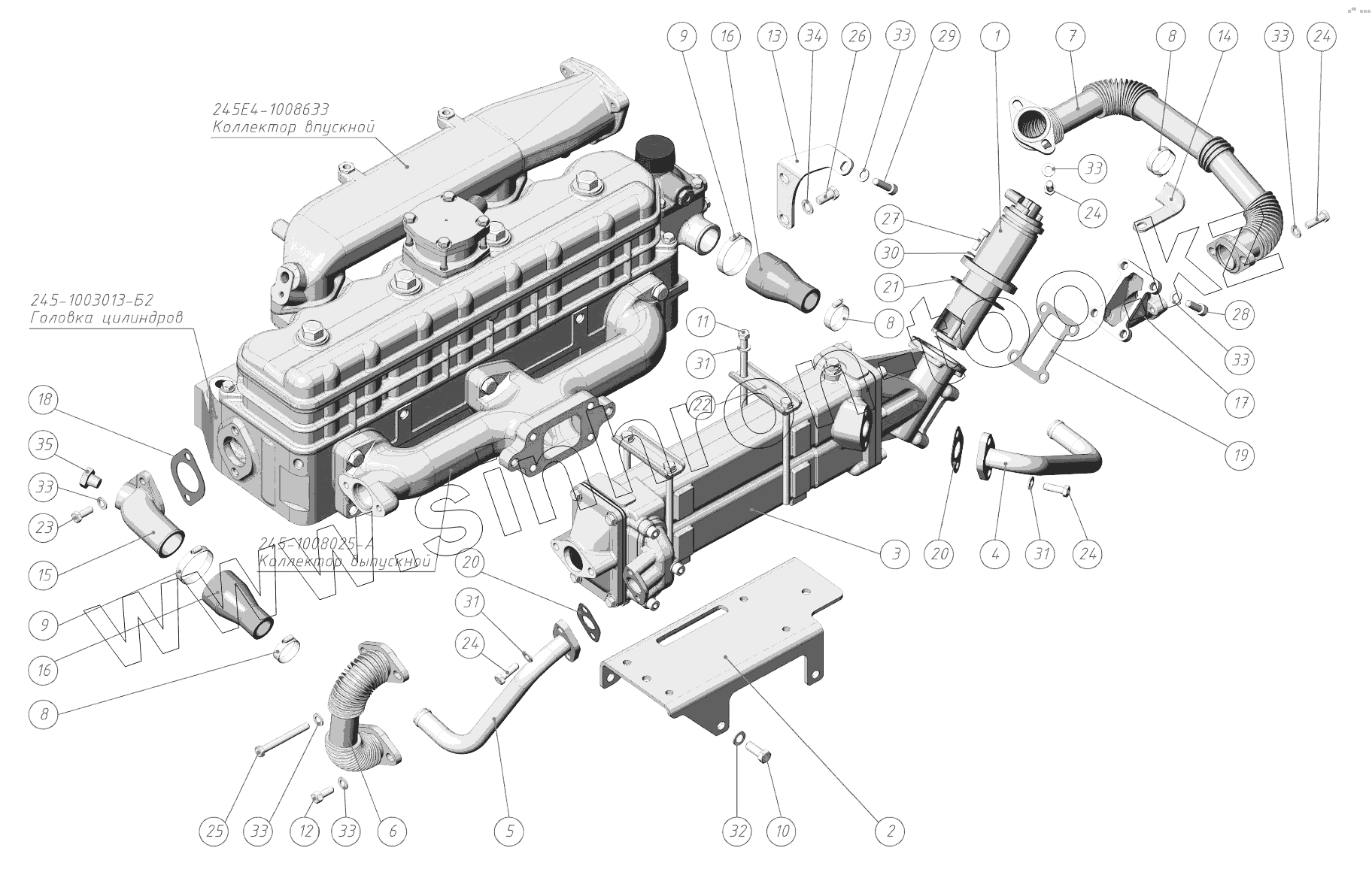 Каталог запасных частей к технике: ММЗ Д-245.7E4. Установка системы рециркуляции отработавших газов.