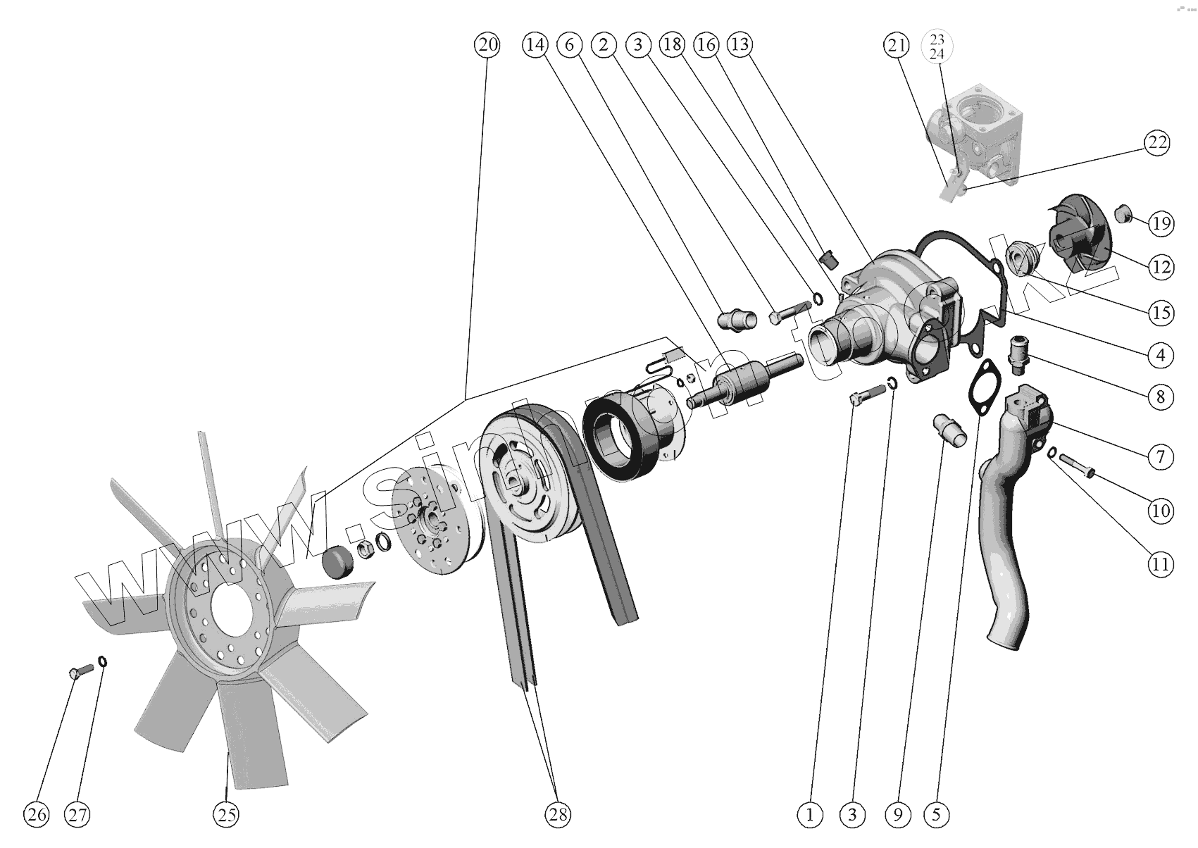 Каталог запасных частей к технике: ММЗ Д-245.7E4. Установка водяного насоса.