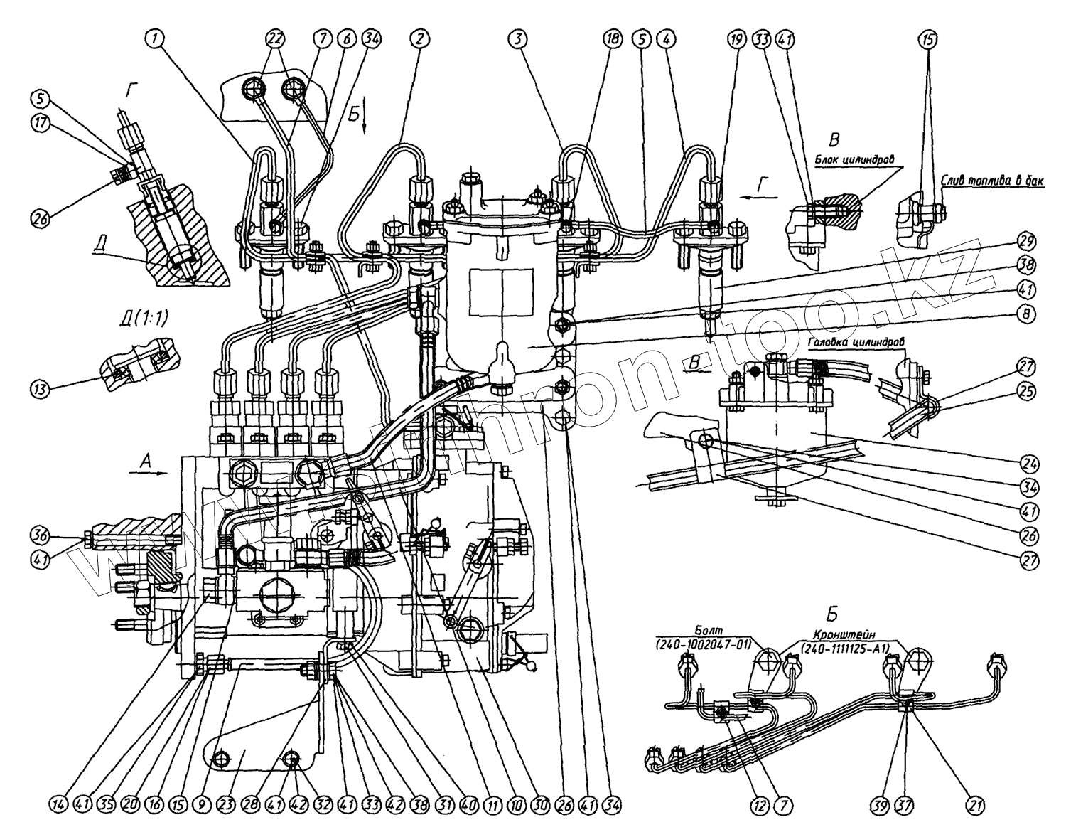 | 1 | 245-1104300-Б | Топливопровод высокого давления 1-го цил. | |