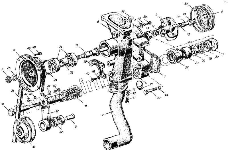 Каталог запасных частей к технике: ММЗ Д-260.1. Водяной насос и натяжитель