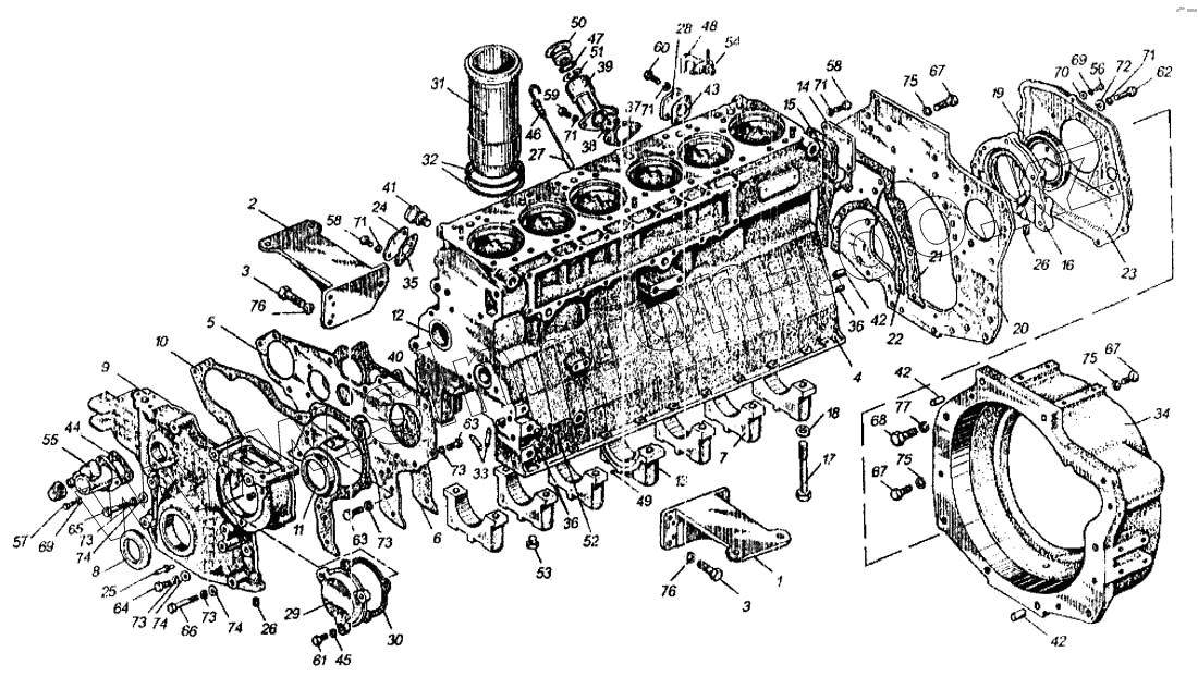 Каталог запасных частей к технике: ММЗ Д-260.4. Подвеска и блок цилиндров