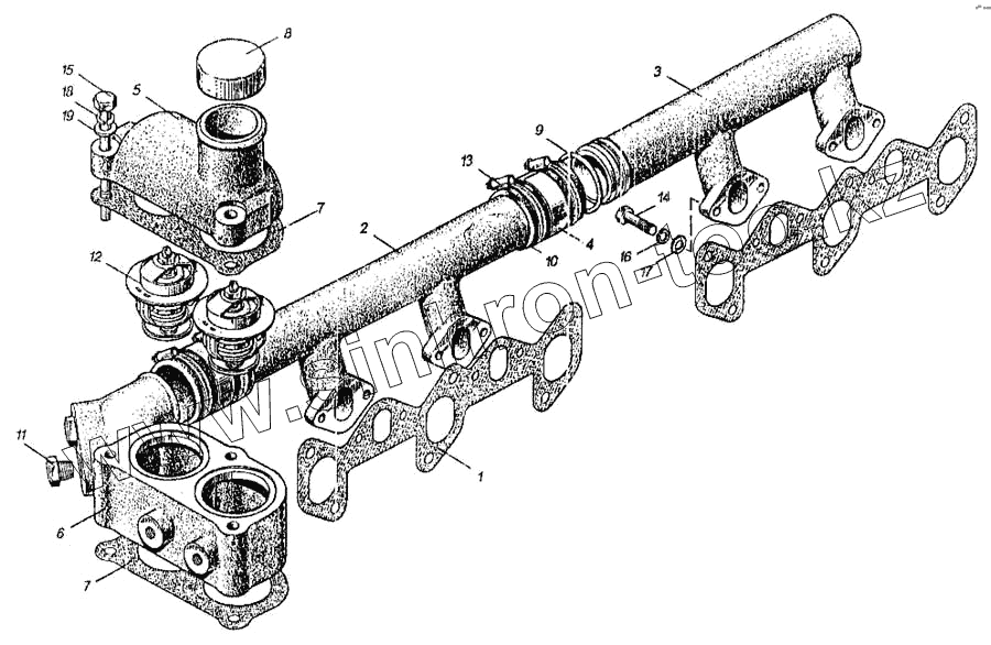 Каталог запасных частей к технике: ММЗ Д-260.4. Водосборная трубка и термостаты
