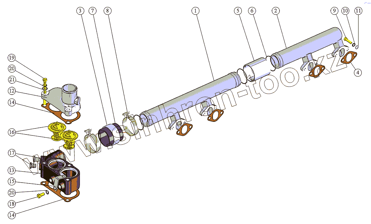 Каталог запасных частей к технике: ММЗ Д-260.7C. Труба водосборная. Корпус термостатов
