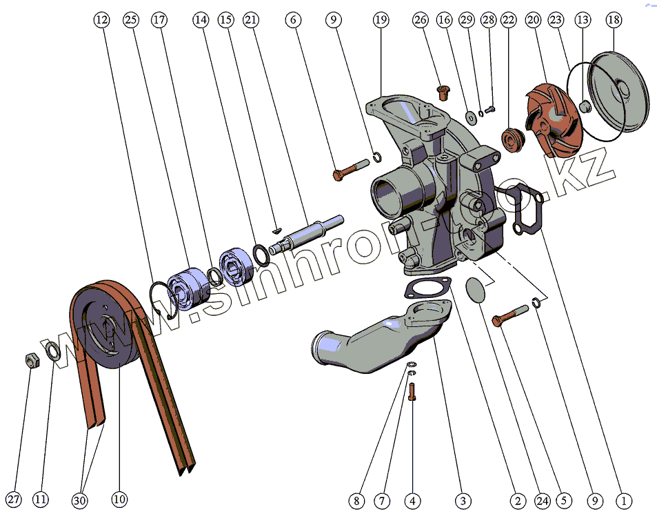 Каталог запасных частей к технике: ММЗ Д-260.7C. Установка водяного насоса
