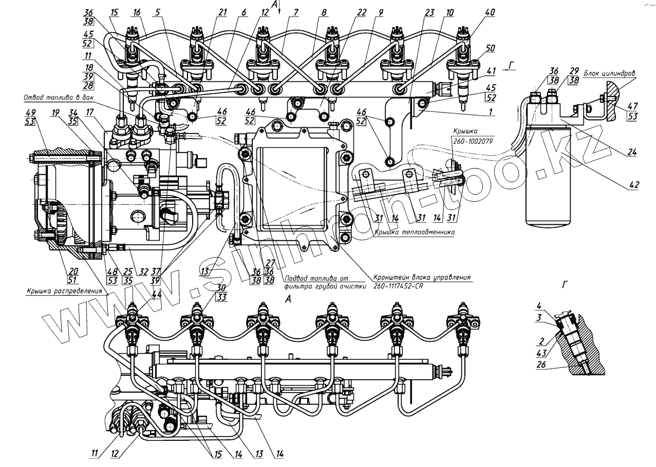 Каталог запасных частей к технике: ММЗ Д-260S3A. Топливные трубопроводы и установка топливной аппаратуры