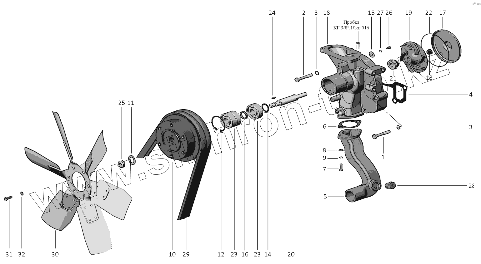 Каталог запасных частей к технике: ММЗ Д-260S3A. Установка насоса водяного. Установка вентилятора.