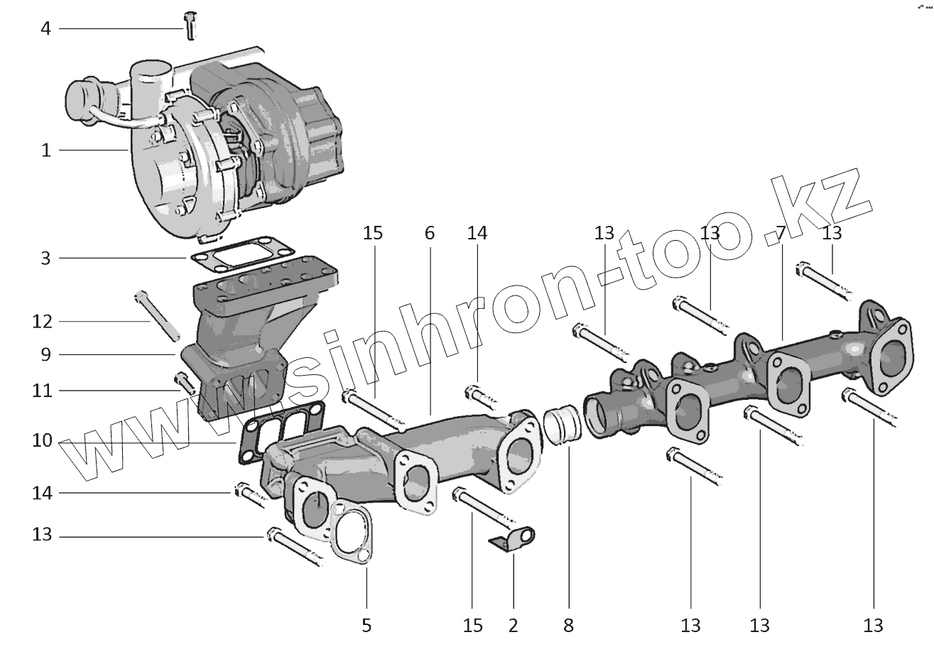 Каталог запасных частей к технике: ММЗ Д-260S3A. Установка турбокомпрессора