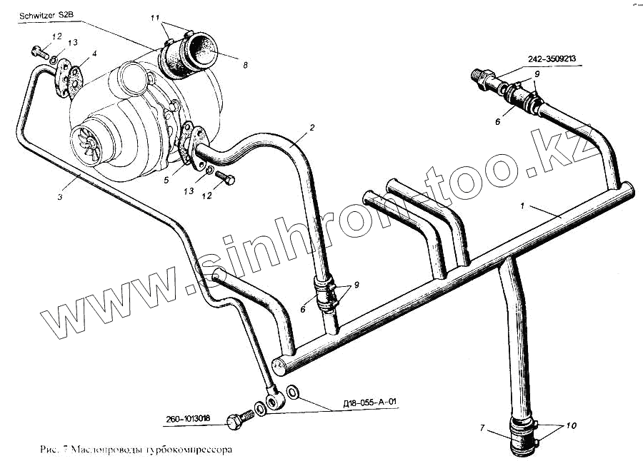 Каталог запасных частей к технике: ММЗ Д-265. Маслопроводы турбокомпрессора