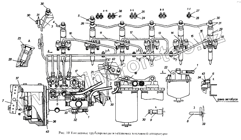 Каталог запасных частей к технике: ММЗ Д-265. Топливные трубопроводы и установка топливной аппаратуры