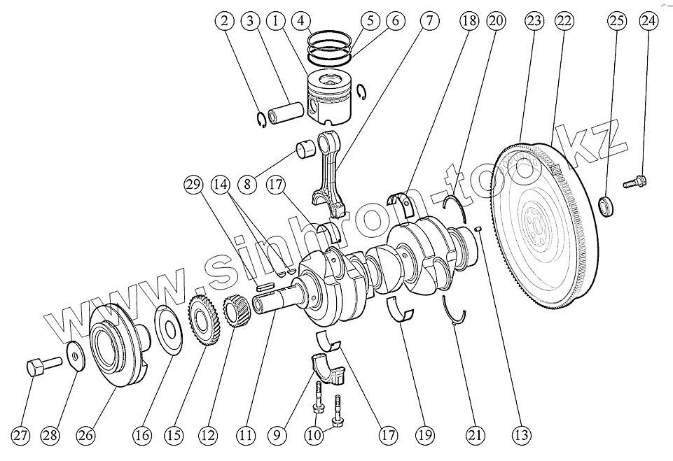 Каталог запасных частей к технике: ММЗ-3LD. Кривошипно-шатунный механизм. Установка маховика