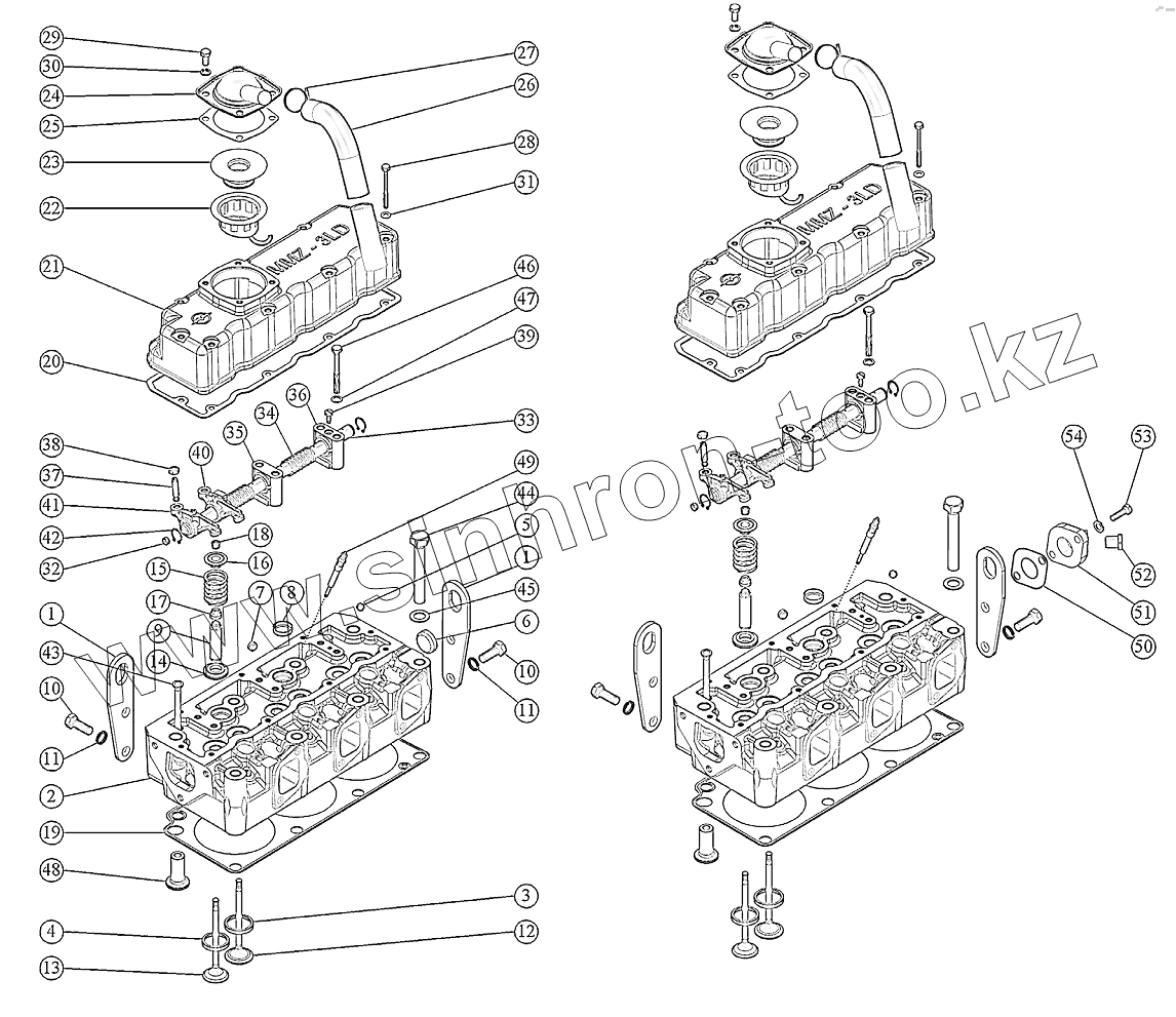 Каталог запасных частей к технике: ММЗ-3LD. Установка головки цилиндров. Механизм коромысел