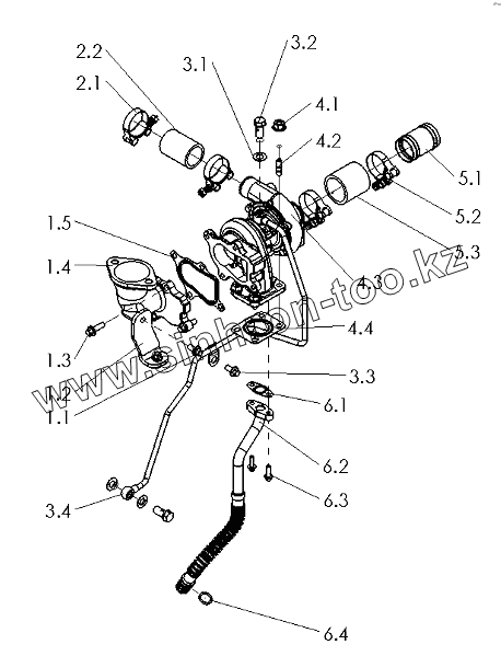 Каталог запасных частей к технике: Raywin YC4D2455-D39. R7000-1118000 Turbocharger Assembly