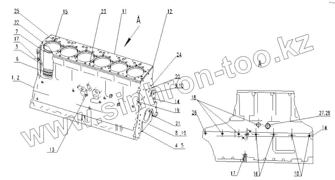 Каталог запасных частей к технике: SDEC SC11CB220G2B1. Cylinder block