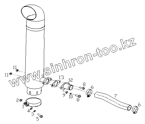 Каталог запасных частей к технике: SDEC SC9D220G2B1. EJECTION TAILPIPE GROUP, EXHAUST S00004880+01