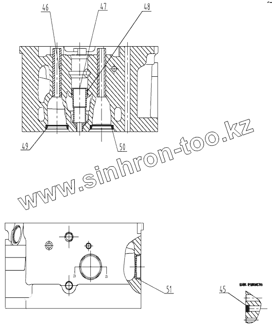 Каталог запасных частей к технике: SDEC SC9DF260Q5. CYLINDER HEAD ASSY