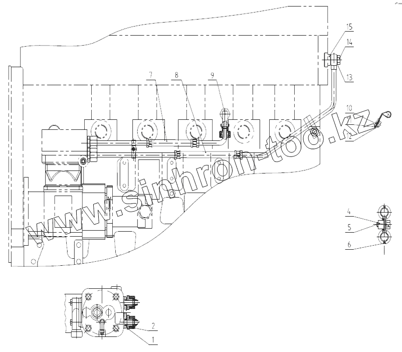 Каталог запасных частей к технике: SDEC SC9DF260Q5. ENGINE APPLICATION COOLANT LINE GROUP