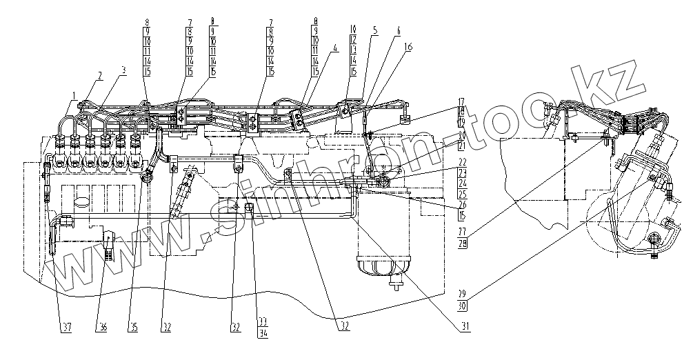 Каталог запасных частей к технике: SDEC 6CL320-2. FUEL LINES GROUP