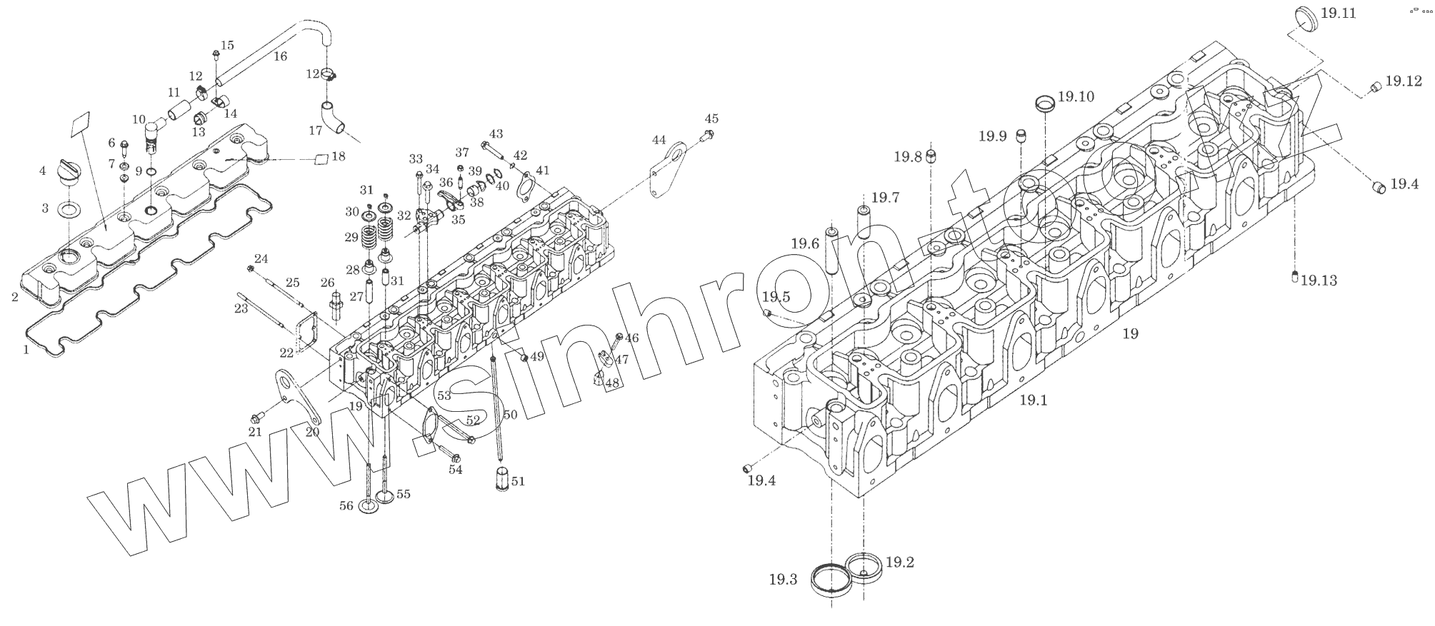 Каталог запасных частей к технике: SDEC серии 6114В. Головка блока цилиндров