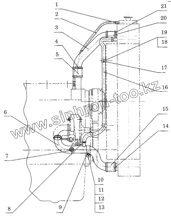 Каталог запасных частей к технике: SDEC серии 6114В. Система охлаждения двигателя