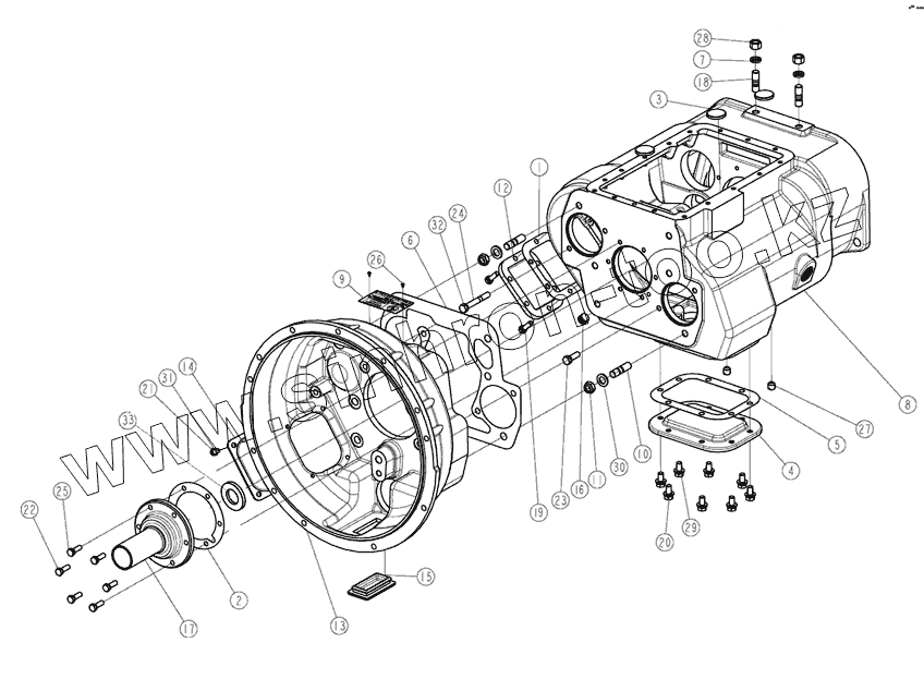Каталог запасных частей к технике: Shaanxi 12JS200TA-G2193. Картер сцепления и коробки передач
