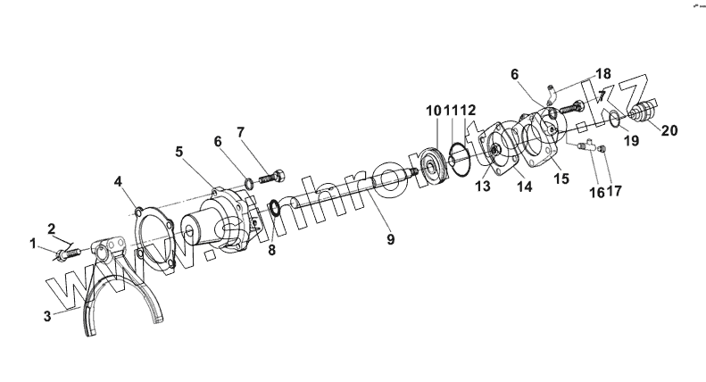 Каталог запасных частей к технике: Shaanxi 9JS135A-G1800. Цилиндр воздушный переключения передач демультипликатора