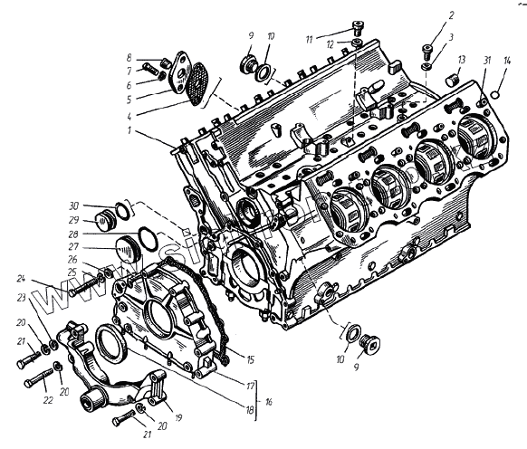 Каталог запасных частей к технике: ТМЗ Дизели ТМЗ-8421 - 85227. Блок цилиндров