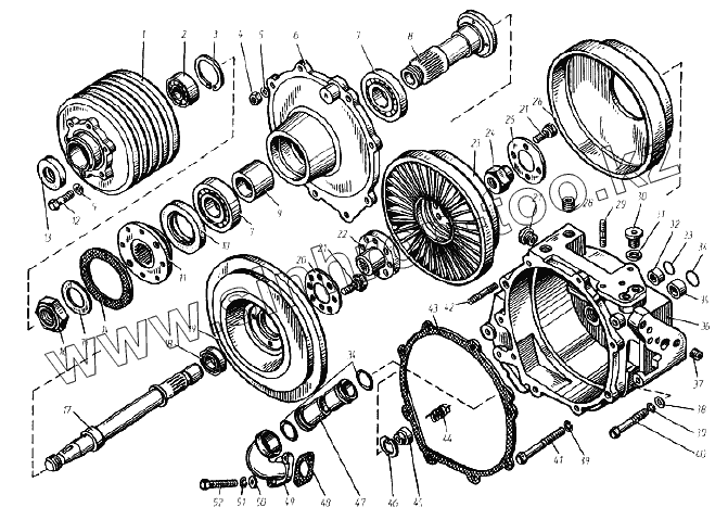 Каталог запасных частей к технике: ТМЗ Дизели ТМЗ-8421 - 85227. Гидромуфта привода вентилятора