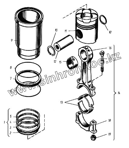 Каталог запасных частей к технике: ТМЗ Дизели ТМЗ-8421 - 85227. Гильза цилиндра, поршень и шатун
